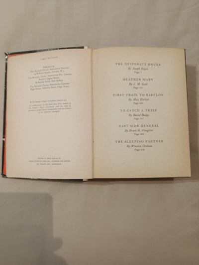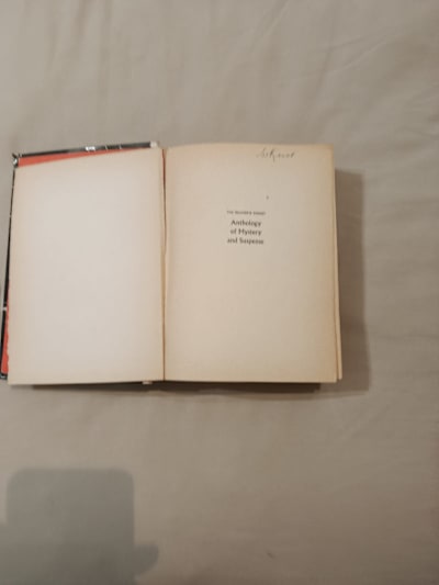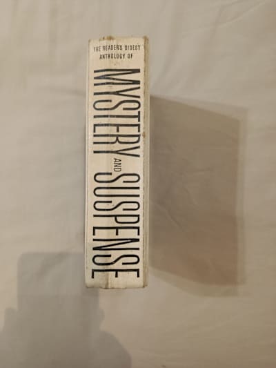 Not just any book — an original 1961 edition of The Reader’s Digest Anthology of Mystery and Suspense.